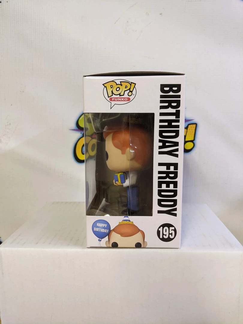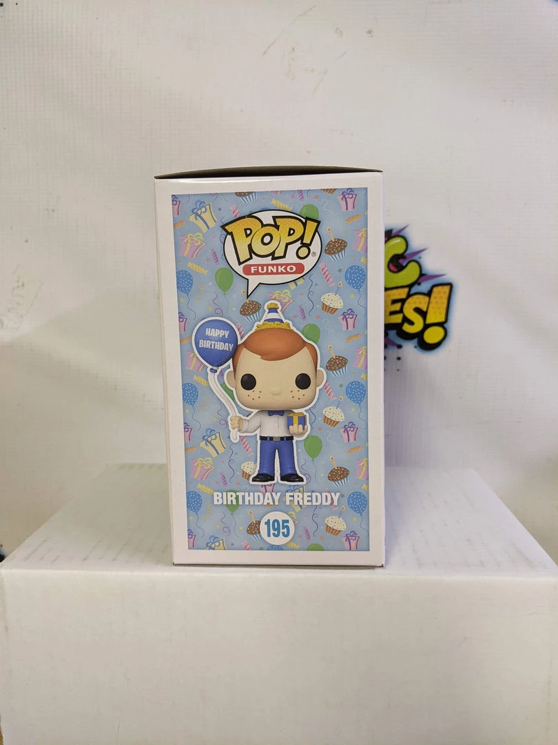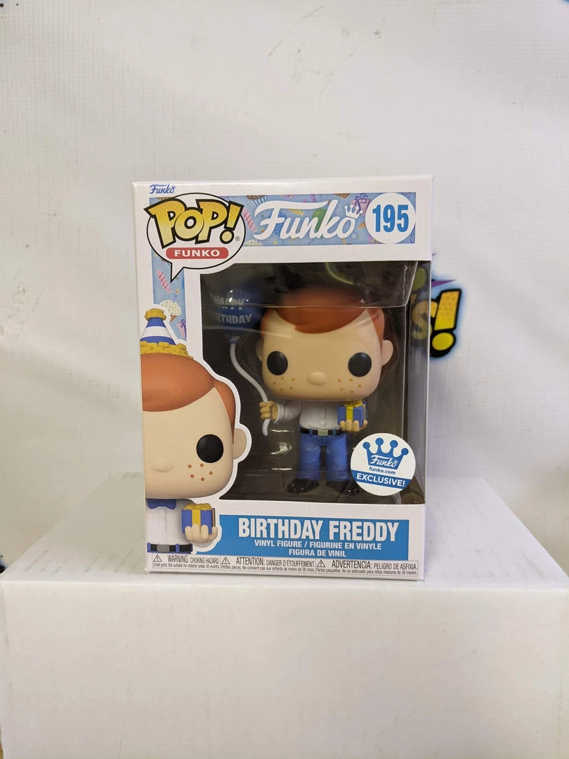 Birthday Freddy Alternative Name: Birthday Freddy (with Balloon and Gift) Type: Vinyl Art Toys Brand: Funko Series: Pop! Vinyl , Pop! Originals Scale: 3.75″ Production Status: Exclusive Reference #: 195 Released: 2022 Related Subjects: Freddy Funko